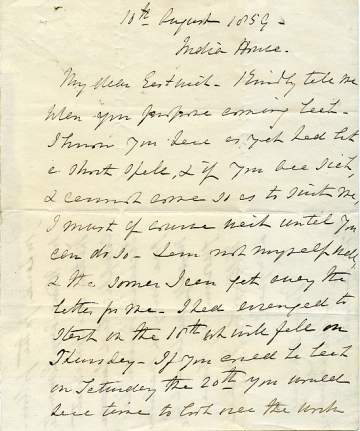 Autograph Letter Signed to [Edward Backhouse] Eastwick (1814-1883, orientalist and diplomatist), 1½ pages 4to (traces of former mounting), India House, 10 August 1859. Inquiring about the possible date for Eastwick's return and emphasising its urgency. '... I am not myself well, & the sooner I can get away the better for me. ...'Eastwick was at this time assistant political secretary at the India Office. £75 [No: 23977] The first page only is shown. |