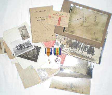 WORLD WAR I - Royal Air force The Pilot's Flying Log Book of Lieutenant G[eorge] Adrian Binning, August 1918 to February 1919, 46 pages, rather worn, with related material. All the entries, which include cross-country flying, bombing practice, engine troubles etc. are for the No. 18 Training Depot based at RAF Helwan in Egypt, a base that was used in both the first and second world wars. The associated material includes Binning's British War and Victory medals; various real photographs, largely depicting himself; a folder of aerial reconnaissance photographs taken at Heliopolis, Aboukir, Ismailia etc.; his passport as a shipping clerk, aged 23, for a visit to Russia in 1910'; his discharge certificate from the third batallion of the Welsh Regiment, February 1916; his Royal Flying corps Training Transfer card containing his various test certificates, and a luggage tag for 'Wounded Officers' Kit' in Binning's name, from Tigne Hospital Sliema, Malta, undated. [No: 25456] The image links to a larger or more detailed version.