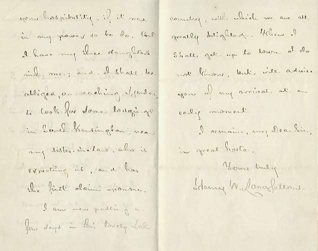 LONGFELLOW, Henry Wadsworth, autographs, letters, documents, manuscripts
